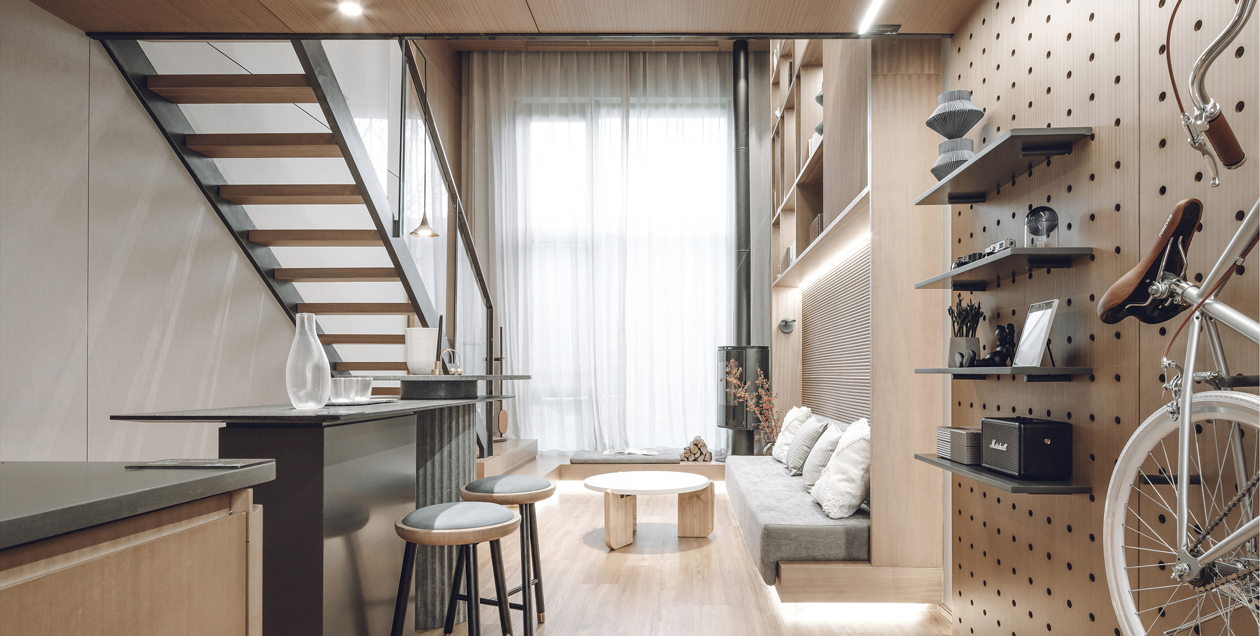 在这个空间中,我们也希望能够呈现出小空间中的“理想之家”,这个空间已不仅是传统的家的概念 ,更是当代年轻人一种对于住所空间的畅想。