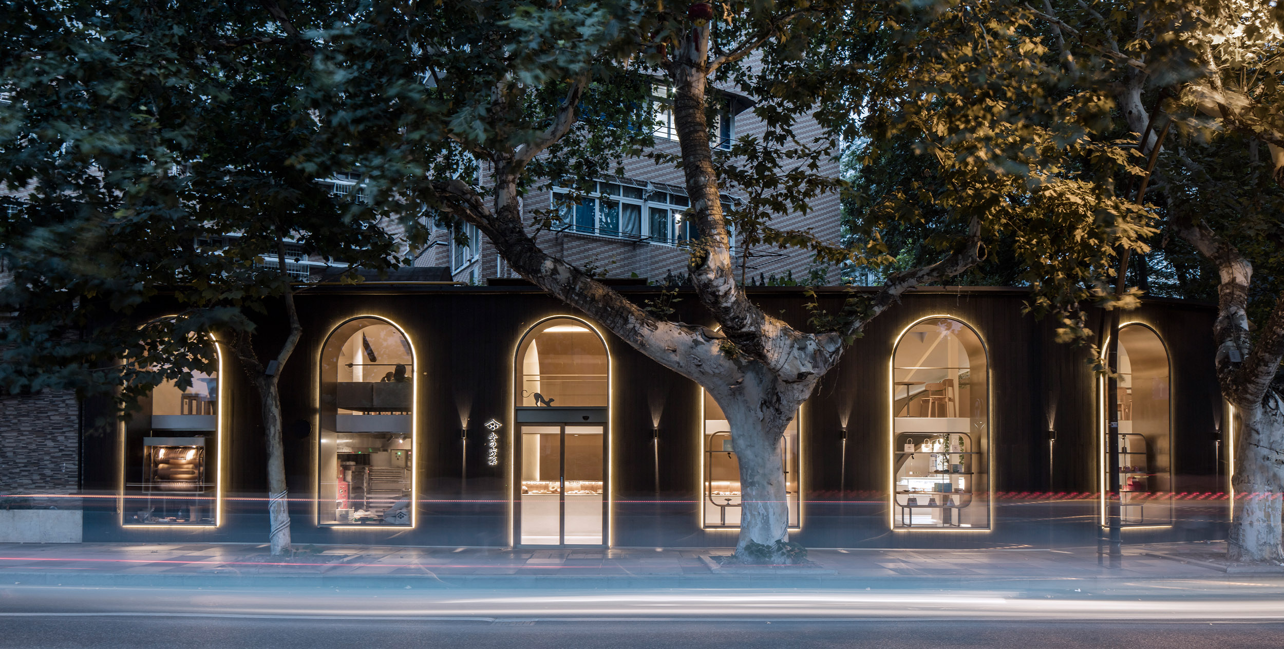 对于安之秀菓的整体改造方案,设计师从斑驳而深沉的梧桐树出发,将原本奶黄色的简易房改造为深色的外立面,辅以金色边框,让整个建筑能与周边环境彼此呼应,完美融合。 空间运用白色和原木为主色调,营造更加自然明亮的感受,为了店铺吸引更多的视线和人流,大大的拱形落地窗恰如其分地解决了这个问题,无论是在黄昏还是夜幕下,室内渗透的景色都成为街边一道靓丽的风景。