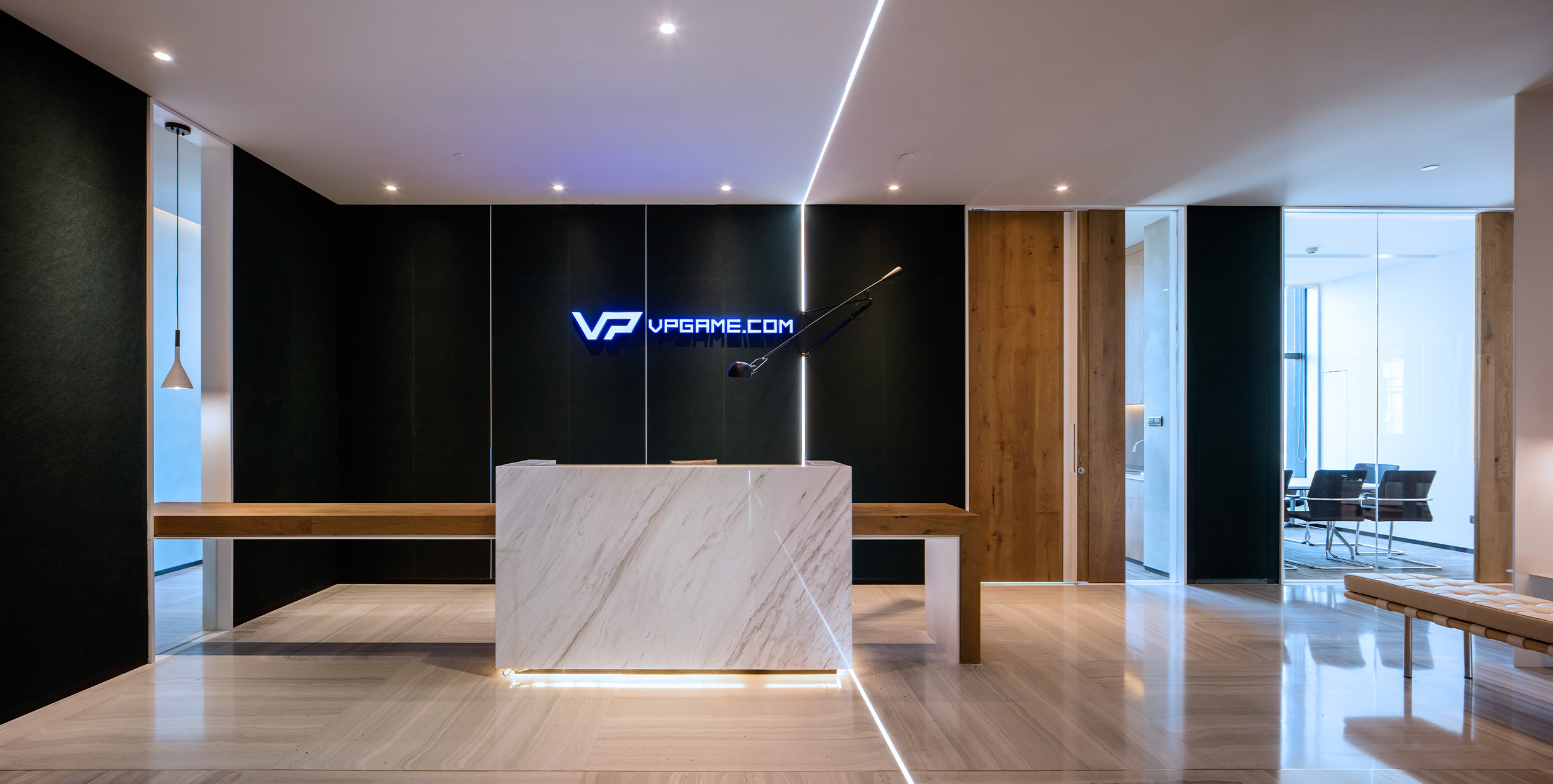 VPGAME办公室位于杭州城市核心地带,这是一家有着电竞俱乐部运营、电竞平台服务和电竞周边商务等多种业务的公司。如何通过设计为这样一家年轻的互联网公司带来完全不同于以往的办公体验,并树立公司的企业文化形象?