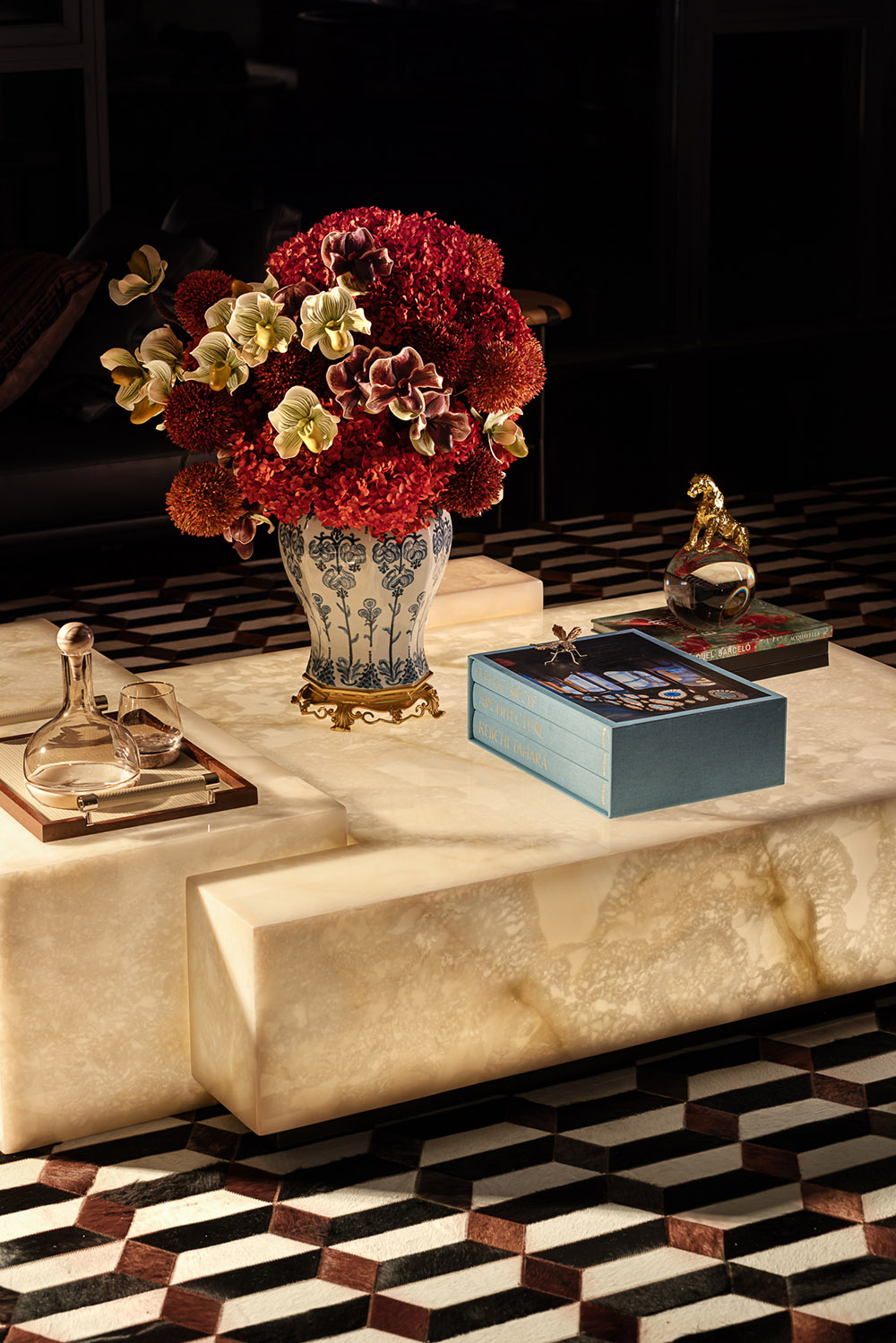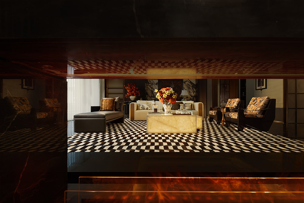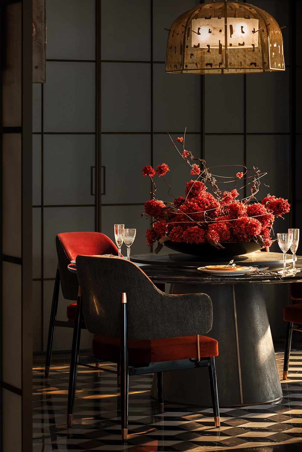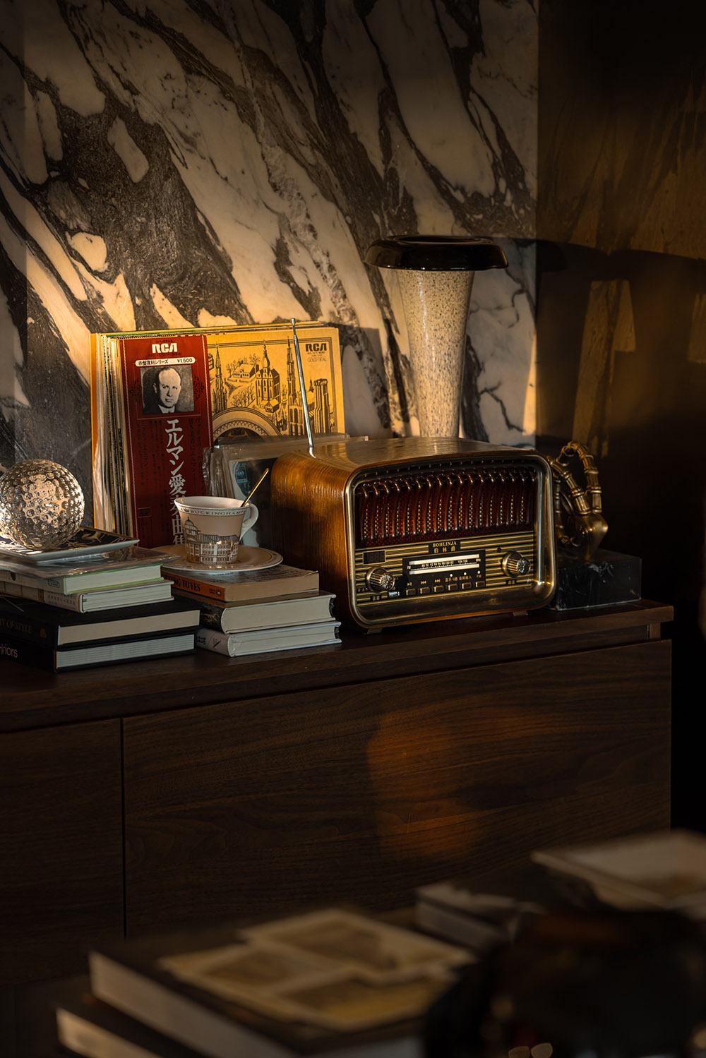 这里是家庭的社交主场,也是艺术生根的土壤。奢石宝格丽紫的硬朗与马毛地毯的复古格纹静静对话,壁炉上的收藏品与游廊悬挂的摄影作品彰显品味。无需刻意叙说风格,但那中西合璧的审美趣味,已悄悄在材质与配色中弥漫。
